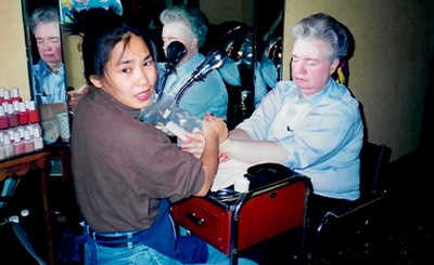 Known as “bicycle Jin,” I rode my bike to clients’ apartments providing in-home mani/pedi with my tools in a backpack.